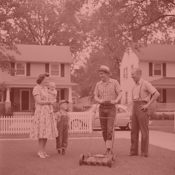 Nostalgic black and white image of a financial advisor meeting clients in their home, emphasizing trusted, personalized service for invoicing and payments.